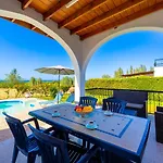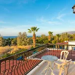 パティオの景色を望むVilla Christos アルガカは,Limniから2.6キロです.
